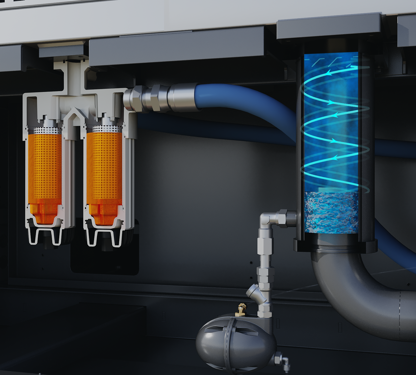 Protects the screw block by separating particles down to 3 microns