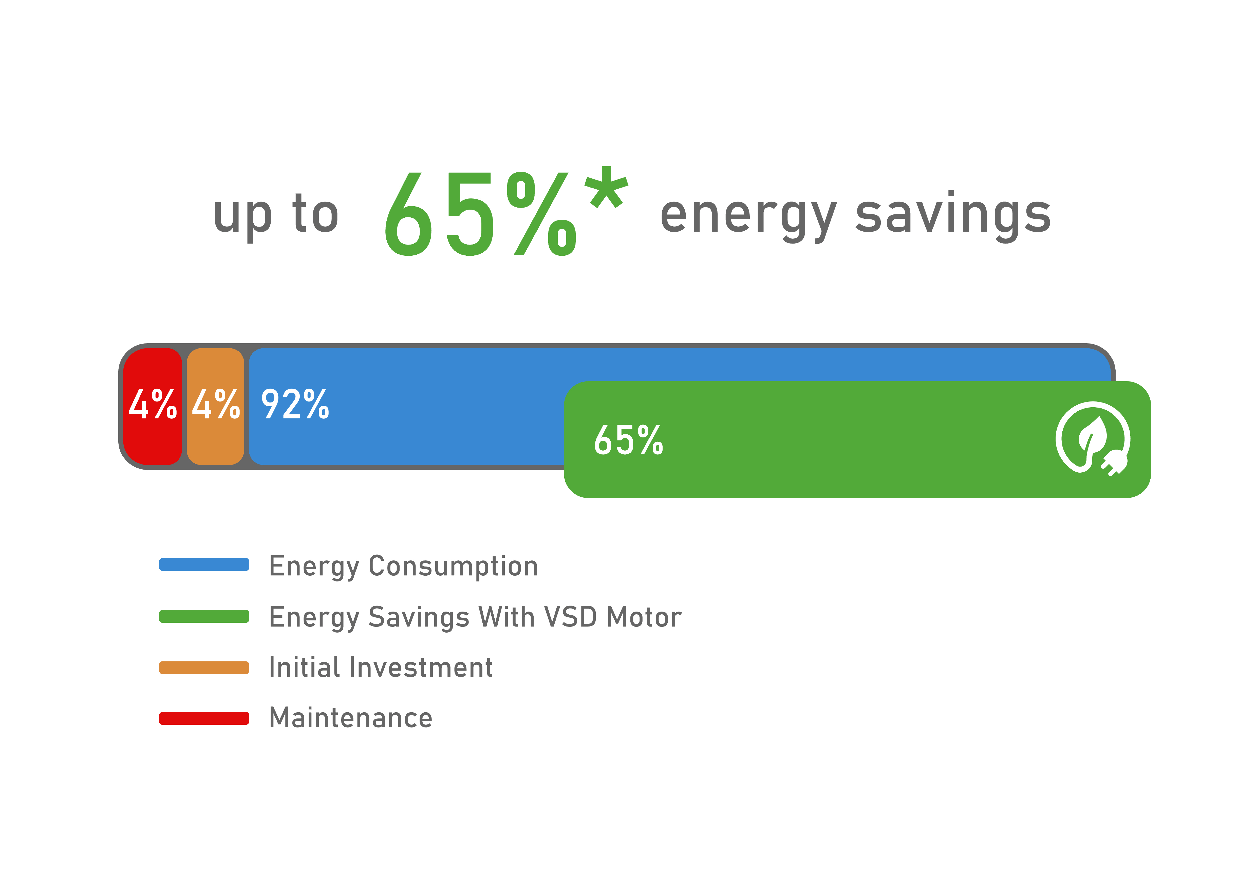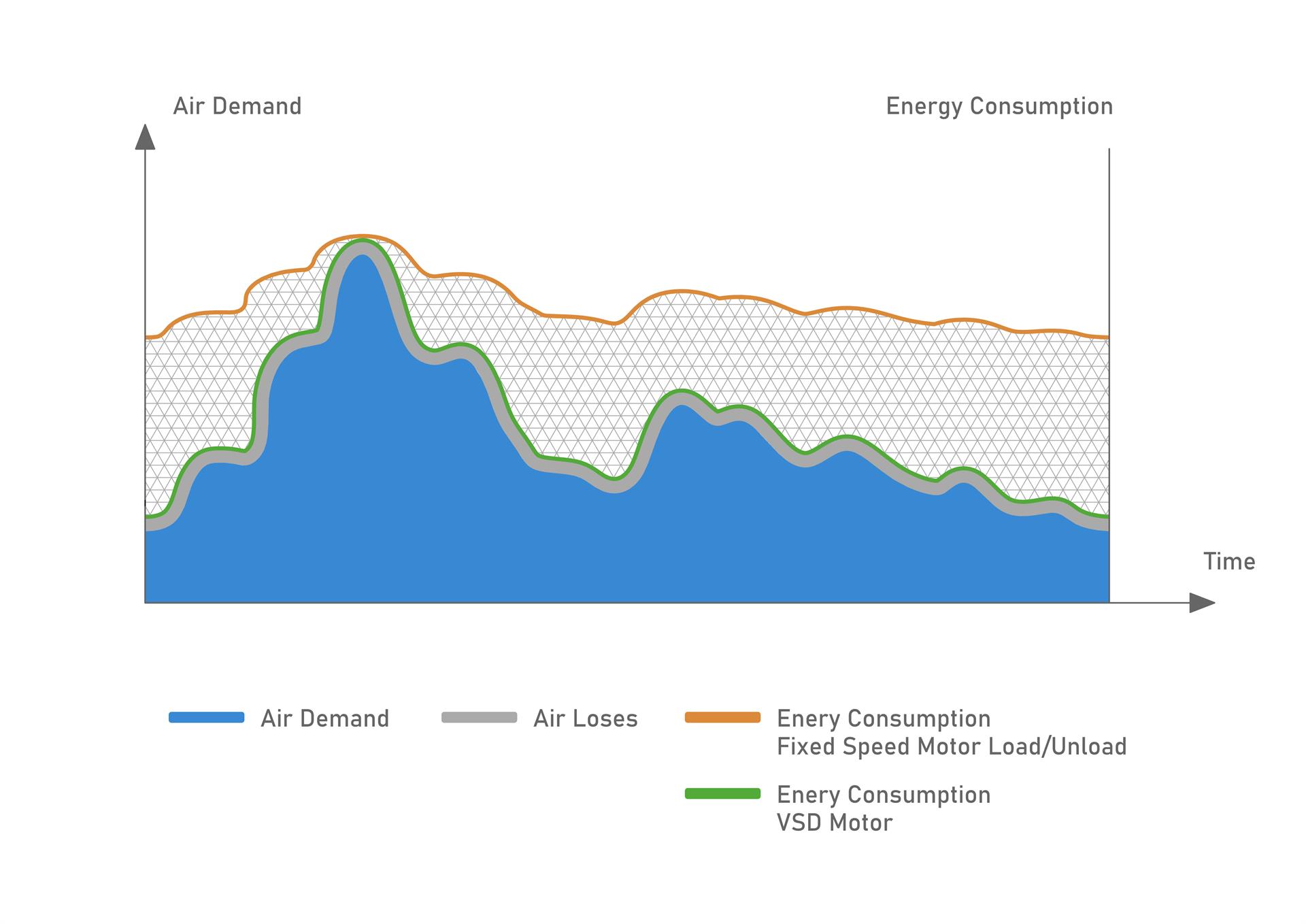 Very often, the actual cost of generation is unknown. Only 10% to 20% of the energy required to generate compressed air ever reaches the point of use, while the remaining energy is wasted in the form of heat.