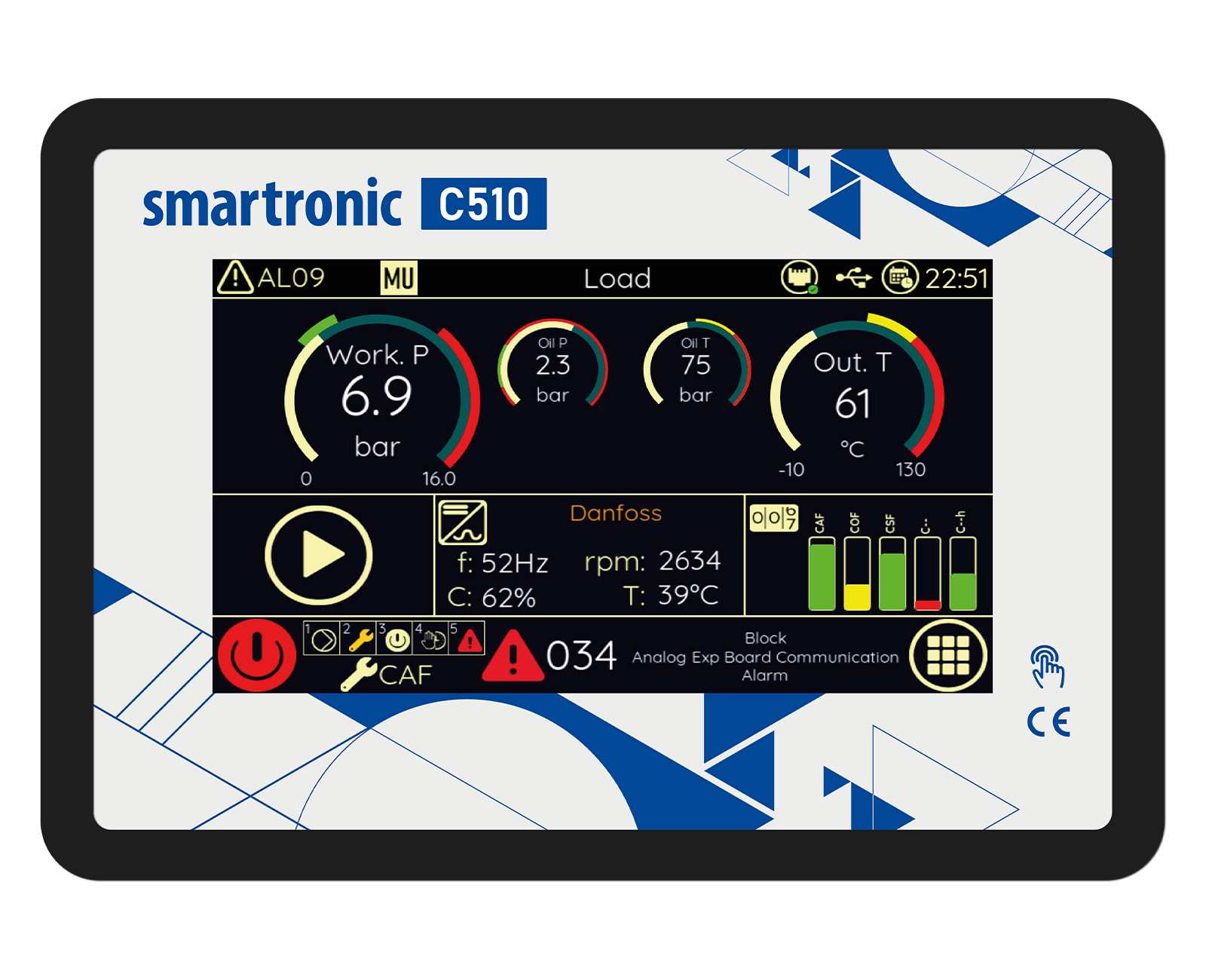 Without the need for an external main controller, ability to work synchronized for up to 5 compressors